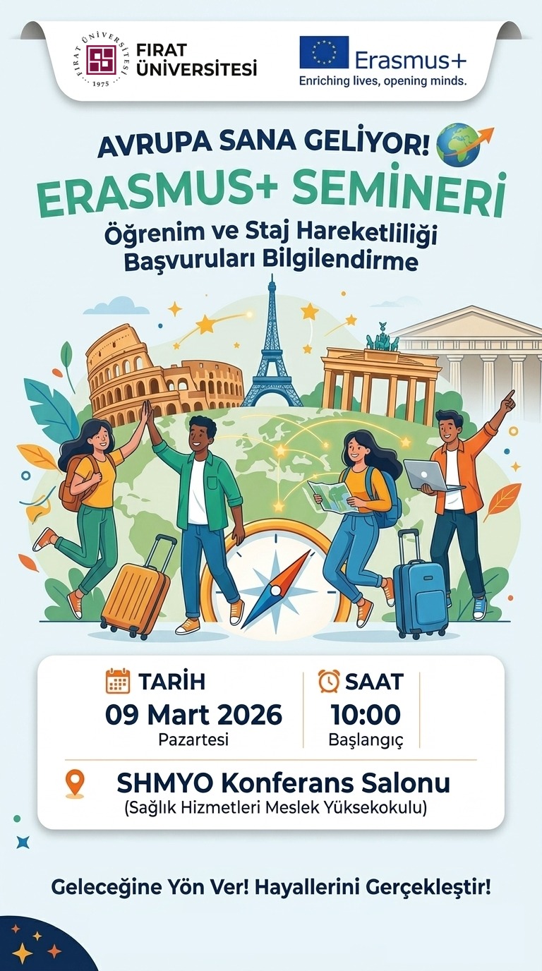 Erasmus+ öğrenim ve staj hareketliliği başvuruları hakkında bilgilendirme semineri düzenlenecektir. Erasmus+ programına başvurmayı düşünen tüm öğrencilerimiz davetlidir.